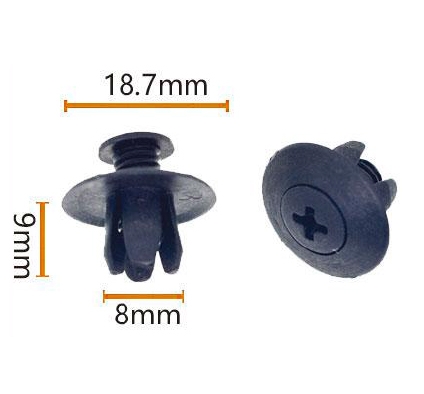 Dengan diameter 18,7 mm, ia memiliki tonjolan unik di bagian atas, yang dirancang untuk sebagian besar atau kesempatan yang membutuhkan gaya pengikat yang lebih kuat. Ukurannya yang tepat dan struktur yang dioptimalkan memastikan pencocokan sempurna dengan berbagai bagian mobil, apakah itu panel interior, trim eksterior atau komponen besar lainnya, dapat dengan mudah mengatasinya.